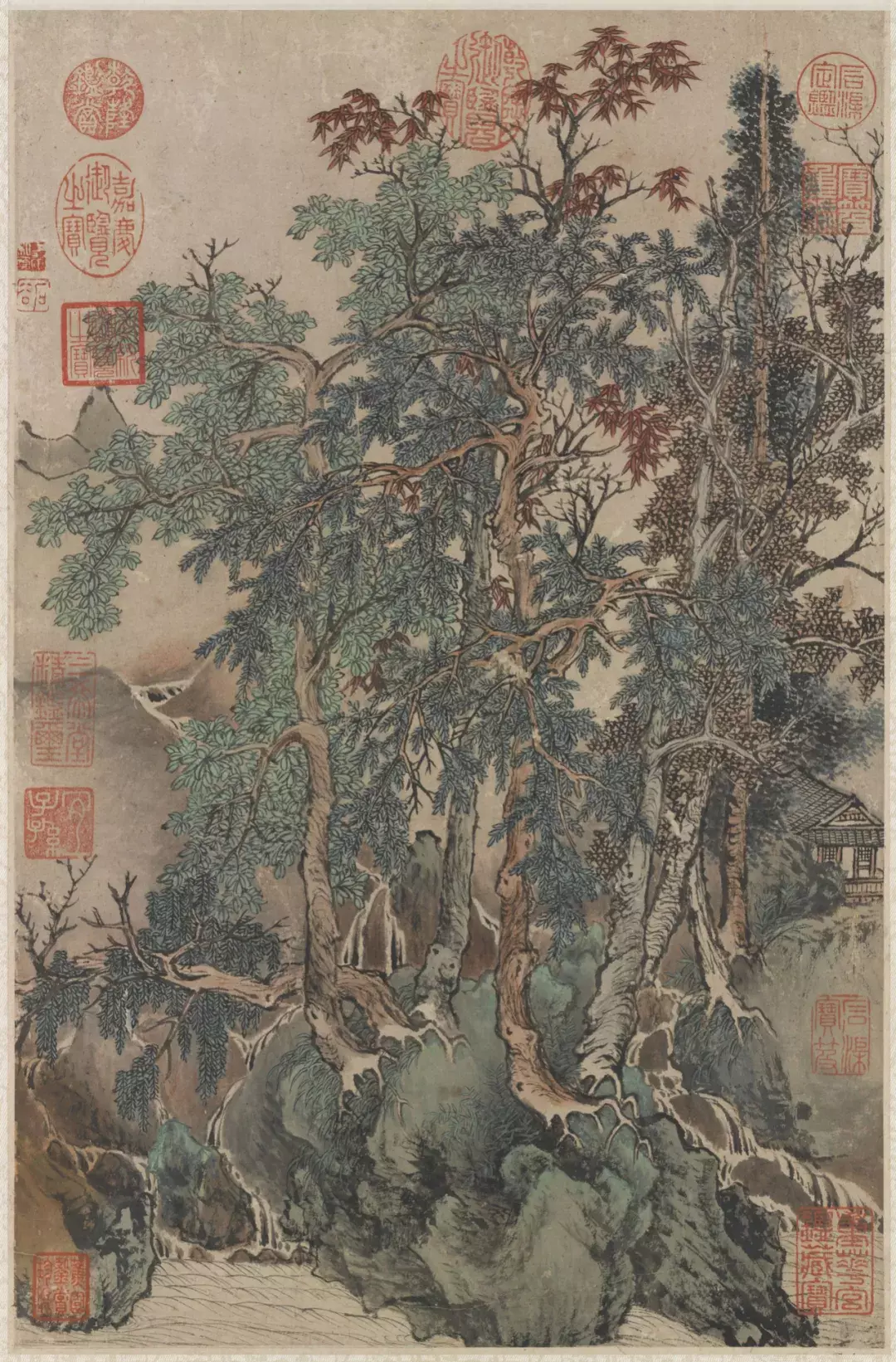 早在汉代的画像砖中,就已经出现了描绘秋季丰收捕猎的场景的画作。然而,秋景真正进入画家的笔下,并作为抒发情感的寄托之一,则是在唐代。随着五代、宋元明清等朝代的更迭,大量的秋景绘画涌现,形成了各具特色的艺术风格。